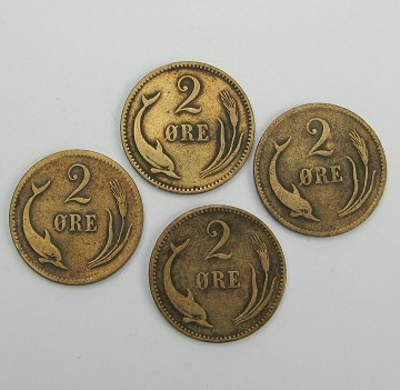 Danmark, Chr. IX 2 øre 1874 - 1883 - 1889 - 1891