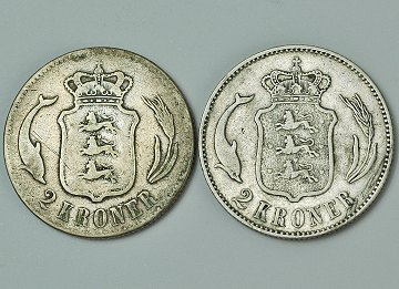 Christian IX, 2 kr SØLV 1875,-76 - H. 13A