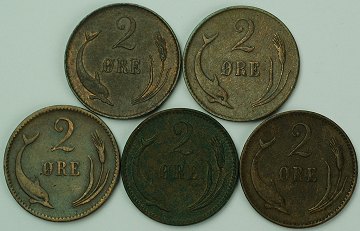 Christian IX, 2 ører 1874,-75,-83,-97,-1902 - H. 18A, 18B