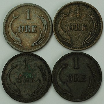 Christian IX, 1 ører 1889,-94,-99,1904 - H. 19A, 19B