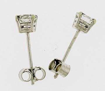 Ørestikker af 9 kt. rhodineret guld, prydet m. to brillantslebne diamanter på ialt. ca. 0.90 ct.