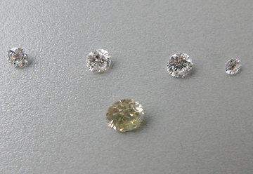 Lot bestående af 5 brillantslebne diamanter på henholdsvis champagnefarvet 0,75 ct. SI - 0,17 ct. Top Wesselton VS/SI - 0,24 ct. Wesselton SI - 0,30 ct. Top Wesselton SI - 0,08 ct. Top Wesselton SI.