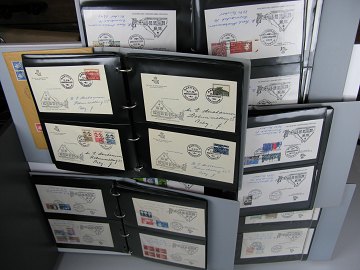 Lot med 354 førstedagskuverter i 5 album, hovedsageligt stemplet på Postgaarden, Købstadsmuseum den gamle By i Aarhus.