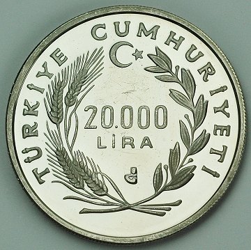 Tyrkiet, 20.000 lira SØLV 1990 Proof - KM 995