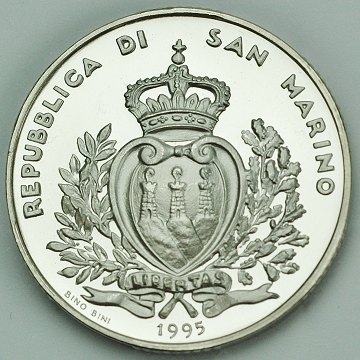 San Marino, 10.000 lire SØLV 1995R Proof - KM 334 *Amerigo Vespucci*