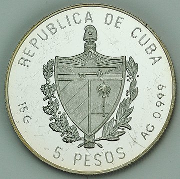 Cuba, 5 pesos FINSØLV 1993 Proof - KM 524.3 *Correo de Cabotaje*
