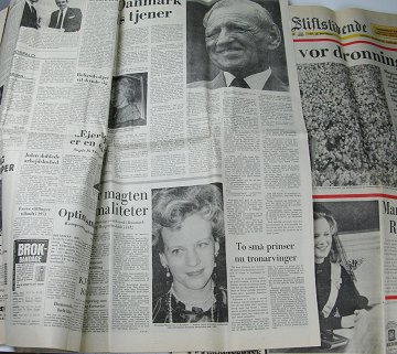 Aarhus Stiftstidende, udgave 15 januar 1972 "Kongen er død" og udgave 16 januar 1972 "Så blev hun vor Dronning"