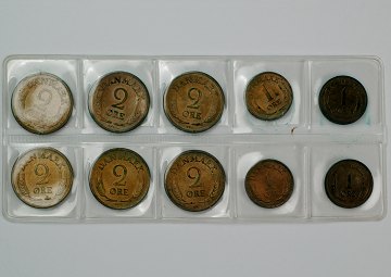 Det såkaldte Hækkerup sæt. Mønterne var præget men aldrig sat i cirkulation. Enkelte mønter var dog sluppet ud og blev solgt for ret høje priser. Man besluttede at sælge mønterne istedet for at indsmelte dem.
