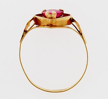 Ældre ring af 18 kt. rødguld, prydet m. facetsleben pink turmalin isat hjerteformet fatning, stemplet "18K" samt utydelig mesterstempel. Str. 51 1/2.