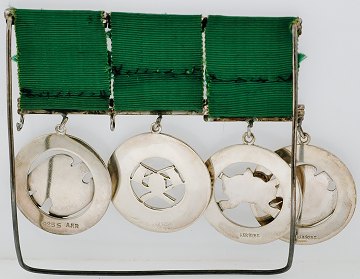 4 medailler (hæderstegn) fra skydeselskabet ’Centrum’ i Aarhus. Medailler og spænder i sterlingsølv. 2 x Fuglekonge, 1 x Skyttekonge og 1 x 25 års jubilæum.