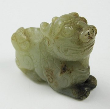 Antik kinesisk Fo hund af jade, ubestemt alder, men fra før 1800/1900 århundredeskiftet. L. 4,5 cm.