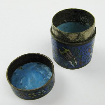 Antik kinesisk cloissonné dåse med tidstypisk ornamnetik for Qing dynastiet. Diam. 31 mm., H. 36 mm.