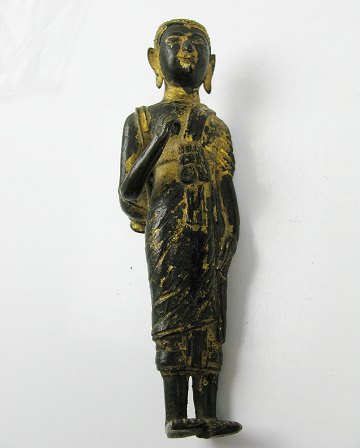 Vidunderlig antik figur af delvis forgyldt bronze i form af madindsamlende Thai munk. H. 17 cm.