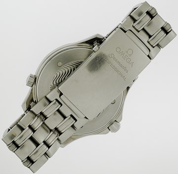 Herrearmbåndsur fra Omega, model Seamaster Professionel 300 M, ref.nr.: 25418000, m. kasse og lænke af stål, blå urskive med bølgestreger og fluoriserende punktinddeling, sekundviser, datoangivelse ved 3" position, marineblå lynette m. arabertal, safirglas, quartz urværk, vandtæt til 300 m. Ø 41 mm.