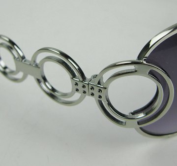 Par børnesolbriller med stel af metal og hvid kunststof.