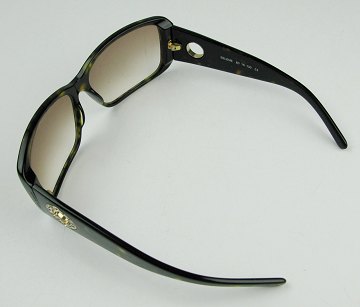 Par solbriller med moderigtig stel af hornfarvet kunststof og simili dekoration.