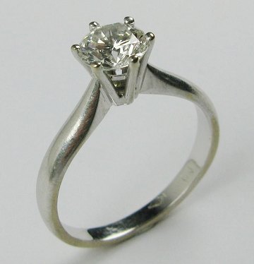 Ring af 18 kt. hvidguld, prydet med brillant Wesselton "H" på 1,01 ct si2.