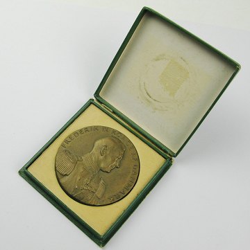Kong Frederik IX medaille af bronze, fremstillet i anledning af Kongens 50 års fødselsdag den 11. marts 1949. Diam. 55 mm. design: Harald Salomon, Den. Kgl. mønts medailleur.