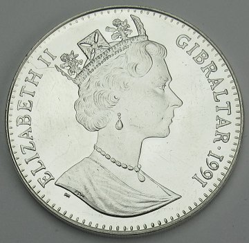 Gibraltar, crown STERLINGSØLV 1991 - KM 73 a