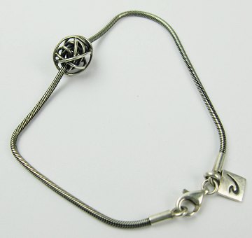 Armlænke af sterling sølv, prydet med charm i form af sølvknude. Karabinlukke med Rauff design vedhæng. L. 18 cm. Vægt 5,4 gr.