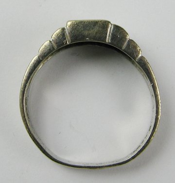 Ring af 18 kt. hvidguld med trappeformet front, prydet med brillantsleben diamant på ca. 0,15 ct. Ring Str. 58., samlet vægt 4,4 gr.