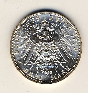 Sachsen 3 mark 1913E, J.140