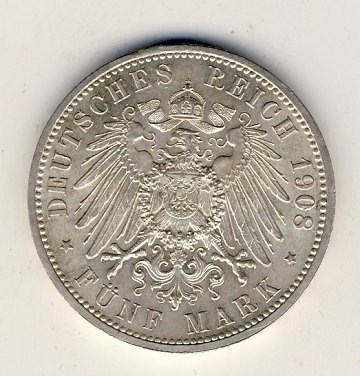 Sachsen-Weimar-Eisenach, 5 mark 1908, J.161