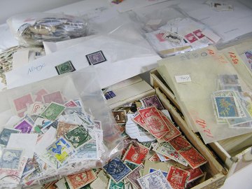 Stort lot frimærker, delvis sorteret efter lande.