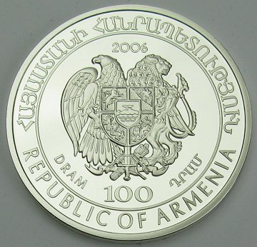 100 dram 2006 sterling sølv præget i anledning af det internationale polarår 2007-2008, i erindring om Fridtjof Nansen, der i 1888 ledede den første ekspedition, der formåede at krydse indlandsisen på Grønland.