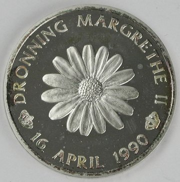Dronning Margrethe II 50 år - 16. april 1990, medaille af sølv. Diam. 33 mm. Finsølvindhold 13,5 gr. Salgsetui og certifikat medfølger.