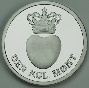 I original æske der indeholder 50 øre samt 1, 2, 5, 10 og 20 kr fra 2011. Desuden indeholder æsken en medaille af finsølv, der på bs. viser en gengivelse af det monogram, der blev benyttet til mønterne for Kong Frederik IX.