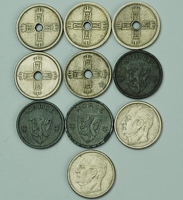 Norge, 25 ører 1924,-27,-29,-39,-40,-43,-44,-45,-58,-59 - Sieg 40, 41, 44