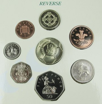 Luksus møntsæt, indeholdende ucirkulerede mønter fra før og efter indførelsen af decimalsystemet.
