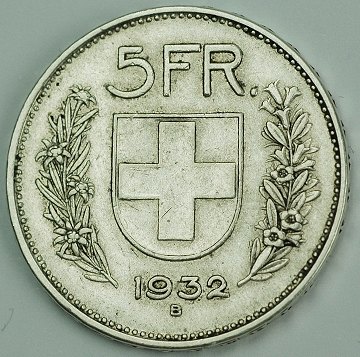 Schweiz, 5 francs SØLV 1932B - KM 37 *William Tell*