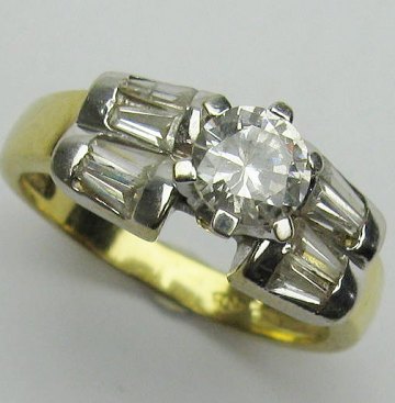 Ring af 18 kt. guld, prydet med brillantslebet stor safir midterst, Diam. 5,7 mm. samt på hver side 4 trappeslebne safirer på ca. 4 x 2 mm. Ring Str. 55, samlet vægt 5,7 gr.