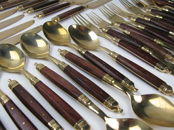 Lot bestående af 12 middagsskeer, 13 middagsgaflwer, 12 middagsknive, 10 kaffeskeer, 4 dessertgafler, 2 smørknive og sauceske. Gall-Leonardo cutlery, Italien omkring 1970.