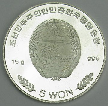 Korea, 5 Won FINSØLV 2001 - *Fodbold VM 2002*