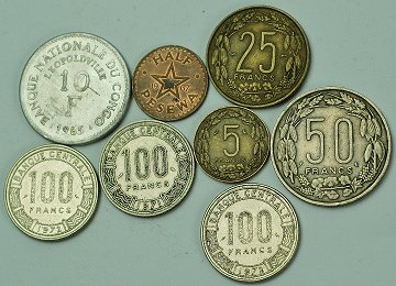 Lot afrikanske mønter, hovedsagelig fra Congo (8)