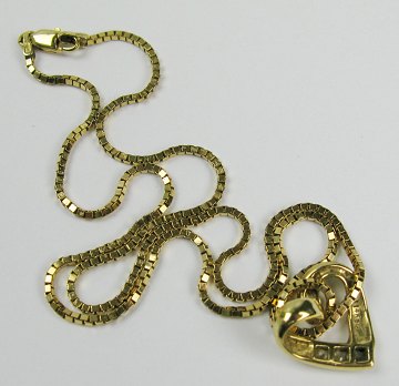 Halssmykke med hjertevedhæng af 14 kt. GULD, prydet med 3 brillanter påsmlet 0,15 ct. Wesselton (H) SI. Kæde L. 40 cm., samlet vægt 6,9 gr.