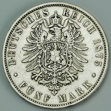 Wurttemberg, Karl I, 5 mark 1875F - KM 623