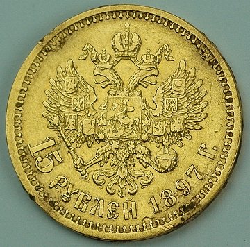 Rusland, Nikolai II, 15 rubler GULD 1897 - Y# 65.1