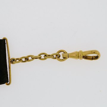 Nydelig chartelaine af ruskind, prydet m. kæde, bånd og ende af 14 kt. guld, 1900-tallets begyndelse. L. 13 cm.