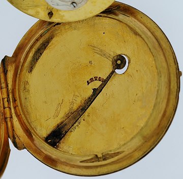Fransk Le Roy-lommeur i kasse af forgyldt metal, hvid fejlfri emailleskive, prydet m. rosenslebne diamanter, forsølvede visere ligeledes prydet m. rosenslebne diamanter, bagkapsel udsmykket m. indlagt farvet emaille i form af vase m. blomster, delvist forgyldt spindelværk m. kæde, signeret "Le Roy, Paris". Ø. 56,2 mm.