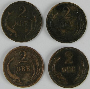 2 øre 1874, 1889 og 1891 - H 18A samt 2 øre 1894 - KM HB 18B