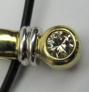 Vedhæng af 14 kt guld med clips-lukke, prydet med brillant på ca. 0.20 ct. L. 20 mm., samlet vægt 2,6 gr.