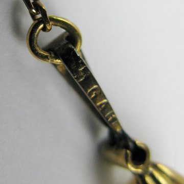 Par ørestikker af 14 kt. guld, prydet med vedhæng på sirlig ankerkæde, hver prydet med ½ ferskvandsperle i muslingfatning af guld og brillantsleben diamant på ca. 0,05 kt. L. med kæde ca. 40 mm.