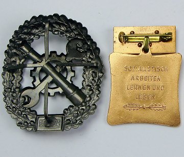 DDR-medaille samt stort hærtegn fra det tyske infanteri (45x50mm.).