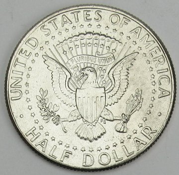 Kennedy half dollar, farvelagt med livssituationer af Prinsesse Diana, design: Drew Struzan. Revers "Eagle Shield". Morgan Mint, Princess Diana Life and Legacy Collection.