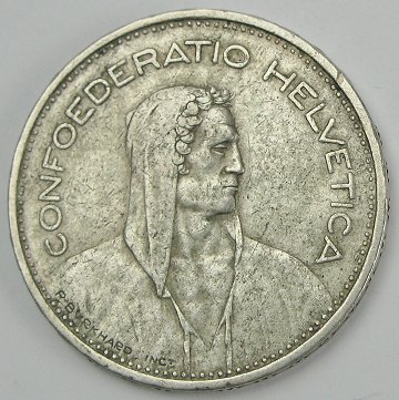 Schweiz, 5 francs SØLV 1935B - KM 37 *William Tell*