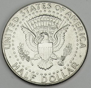 Kennedy half dollar, farvelagt med livssituationer af Prinsesse Diana, design: Drew Struzan. Revers "Eagle Shield". Morgan Mint, Princess Diana Life and Legacy Collection.
